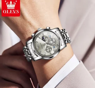 OLEVS Men’s Classic Chronograph Watch – Moon Phase, Waterproof