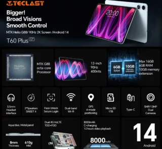 Teclast T60 Plus 12″ Tablet, 6GB+128GB, 90Hz, 4G LTE, 8000mAh
