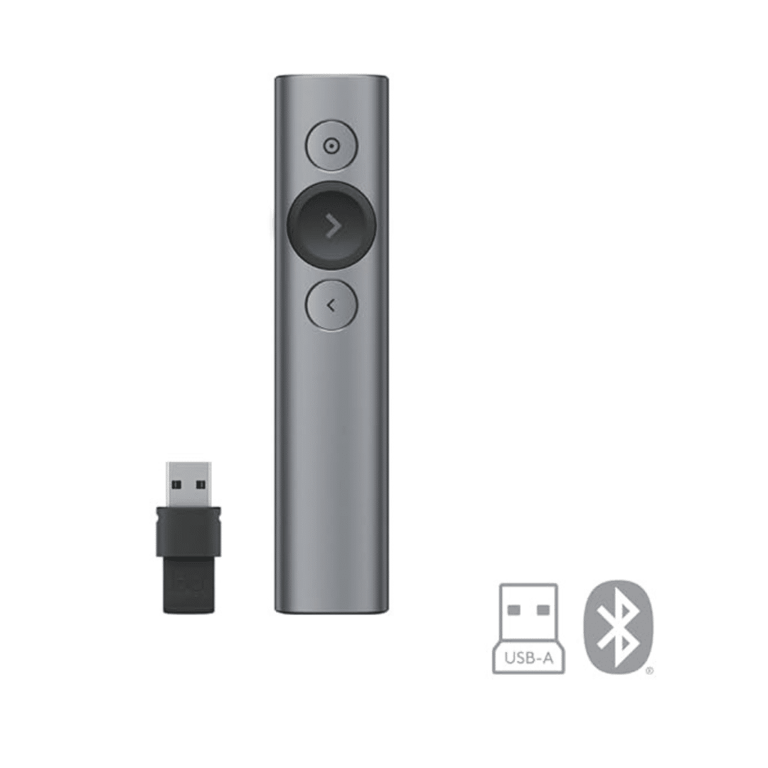 Logitech Spotlight Presentation Remote – Universal Wireless Presentation Clicker with Laser Pointer, Advanced Digital Highlighting, Bluetooth, 30 m Range and Quick Charging – Slate