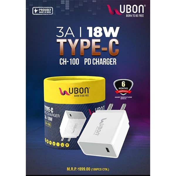 Ubon CH-100 Type-C 3A 18W Charger Adapter