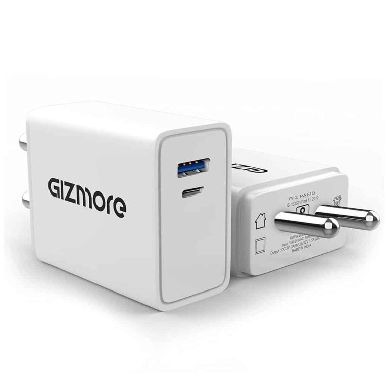 GIZMORE GIZ PA610 Smart Rocket Charger 22.5W PD3.0 Quick Charge Dual Port (USB &Type-C) 4.5A Universal Compatible Wall Super-Fast, Compatible with All iOS & Android Devices, White