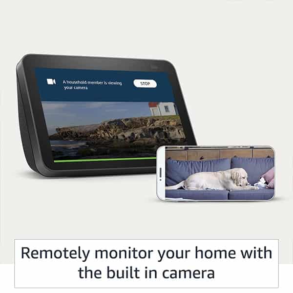 Echo Show 8 connects to Alexa to give you vivid visuals on a 20.32 cm (8 inch) HD screen with rich stereo sound – in a design that fits in any room in your home. Just ask Alexa to show your favourite TV shows, watch movies, play music with lyrics, show you weather updates, watch news bulletins, or control your smart home. It comes with a built-in camera, so just ask Alexa to make video calls to friends & family or monitor your kid’s room while doing your daily chores.
