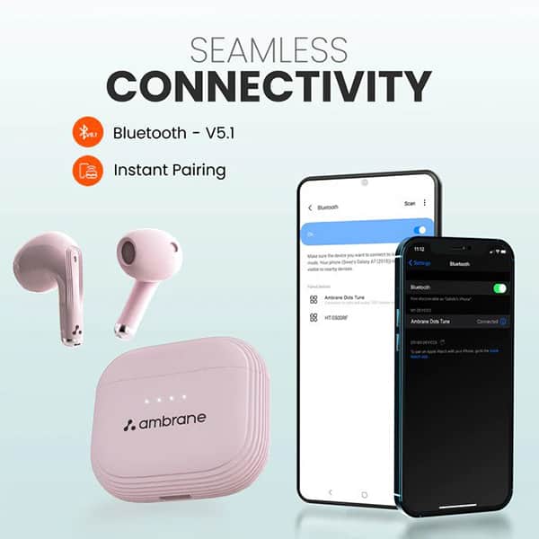 - Hassle-free Control-Â The Ambrane Dots Tune true wireless earbuds come with a multi-functional touch sensor for easy and effortless accessibility. With just a finger tap, the earbuds allow you to play music and manage calls conveniently.
