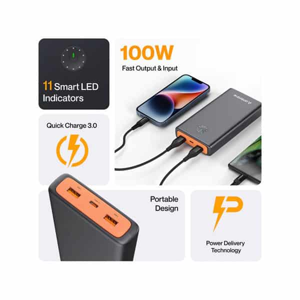 Ambrane Powerlit Ultra 25000mAh 100W BoostedSpeed Power Bank