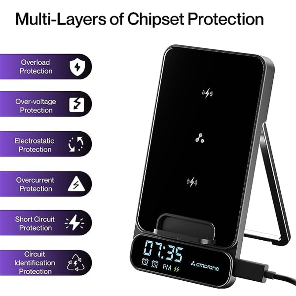 - Video Call Mode Charging: Stay connected and productive with the Ambrane PowerPod Pro wireless charger, offering a vertical placement for your device while it charges, enabling you to make video calls and attend virtual meetings without compromising on power.