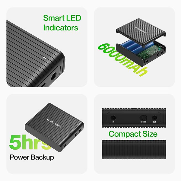 - Interruption-free Internet: The Ambrane PowerVolt Router UPS lets you enjoy a smooth power backup for your Wi-Fi or ADSL router. So, whether you’re working, playing, or watching movies online, it ensures that all of your activities continue without a hitch even in case of power outages.