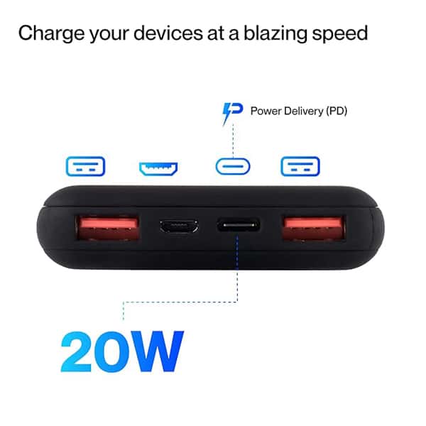 - Ambrane PP-200 is a 10000 mAh portable power bank that features a Li-polymer battery and is built for a safe and efficient user experience. It comes with Power Delivery (PD) technology and 20W fast charging that charge your favourite gadgets at a blazing speed. It has both Micro USB as well as Type-C as its input interface to meet all your digital device requirements. The sleek and premium design makes it super convenient to carry along. Moreover, the power bank is built with multi-layers of Chipset Protection that protects against short circuit, overcharging, overheating and more!
