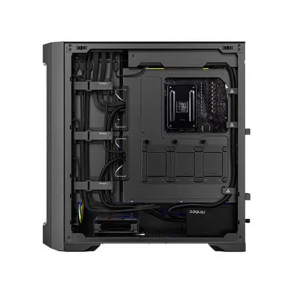 Ample mesh at the bottom and bottom-right side, and the availability of fans installed on the meshed PSU shroud together provide the best performance for the GPU cooling.