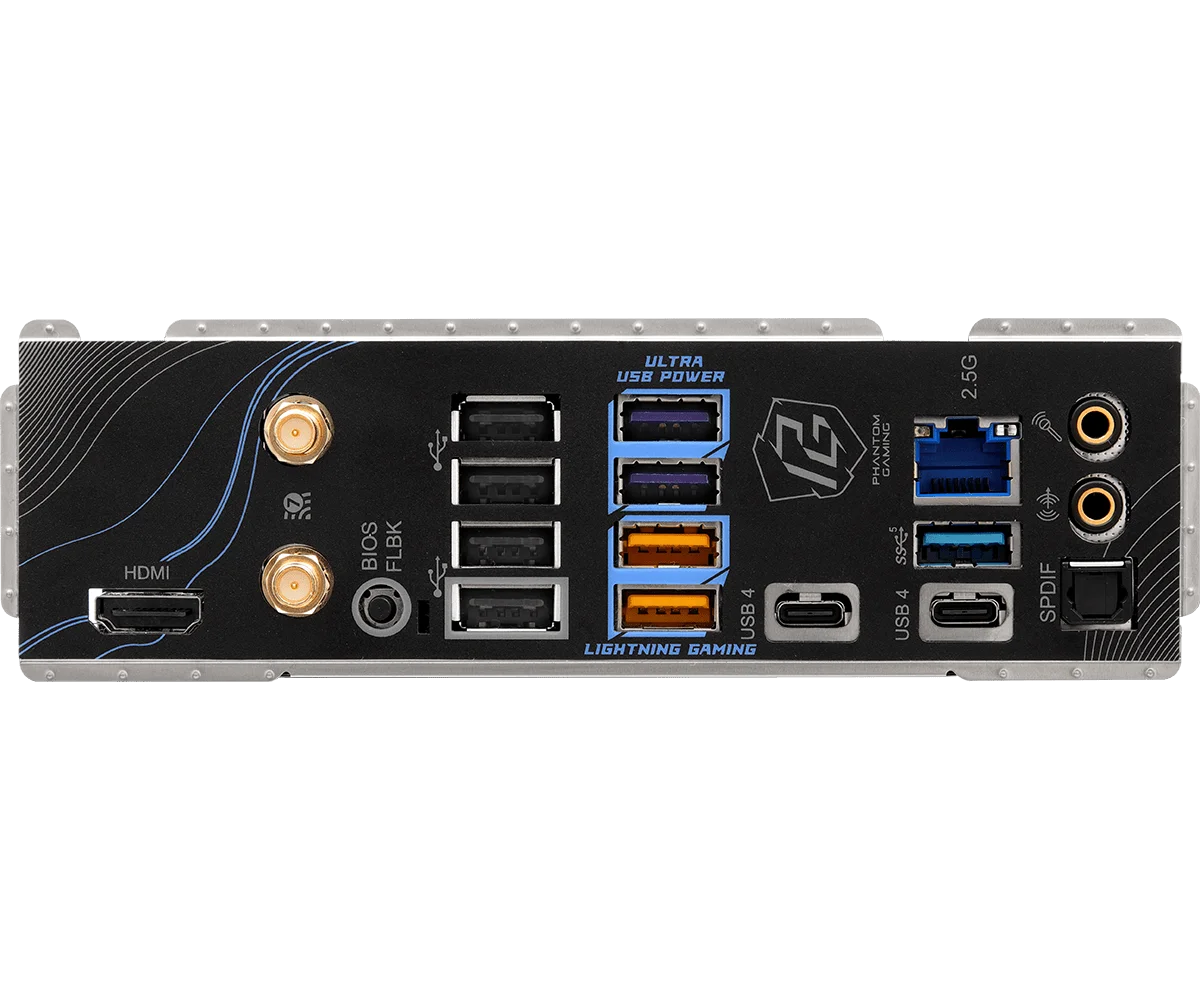 CPU_FAN2, CHA_FAN1~3 and AIO_PUMP can auto detect if 3-pin or 4-pin fan is in use. - Rear Panel I/O- 2 x Antenna Ports