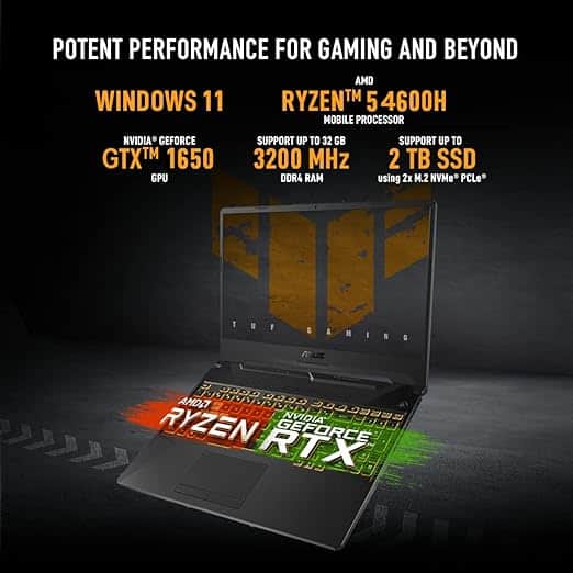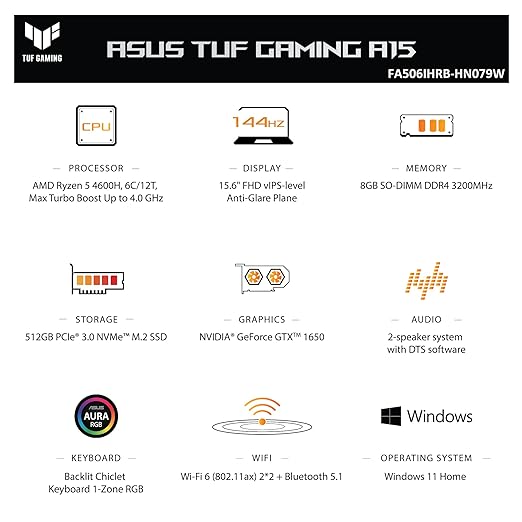 ASUS TUF Gaming A15, 15.6-inch (39.62 cms) FHD 144Hz, AMD Ryzen 5 4600H, 4GB NVIDIA GeForce GTX 1650, Gaming Laptop (8GB/512GB SSD/90WHrs Battery/Windows 11/Black/2.3 Kg), FA506IHRB-HN079W