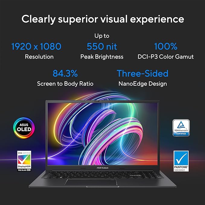 Vivobook 15X OLED provides a stunning visual experience with incredible detail and ultravivid colors from its world-leading OLED panel.