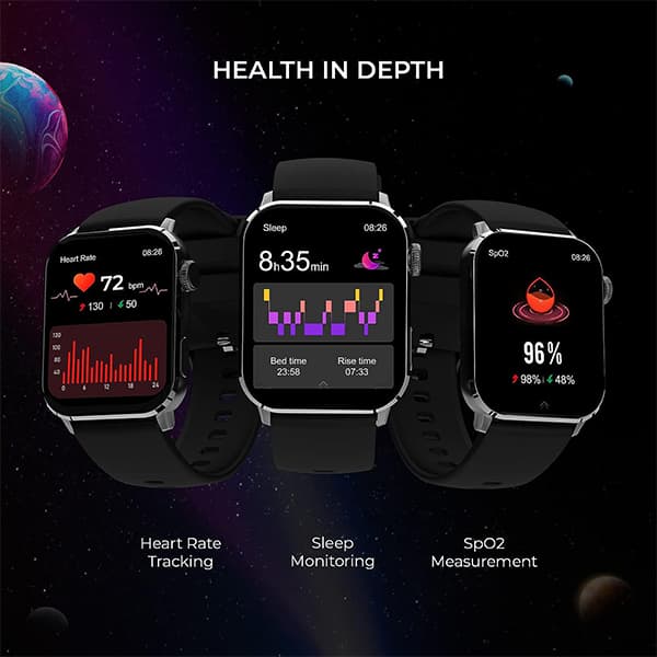 • [24/7 Real-Time Health Monitoring] : The unparalleled user interface allows you to keep track of Health parameters like Heart Rate, SpO2, Stress, Emotions and Sleep directly from your watch and mobile phone.