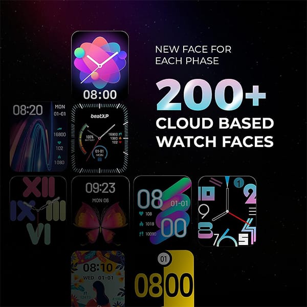 •  [1.8” Super AMOLED Display] : The beatXP Unbound comes with a 1.8” Full Touch Super AMOLED Display. Its sleek bezels allow you to experience this watch without boundaries. Flaunt your wrist with Analog and Digital style Always On Displays and customizable cloud-based watch faces.