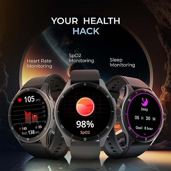 - A radiant smartwatch, beatXP Vega Neo, a perfect smartwatch for men and women exudes brilliance. Featuring a round, 1.43” AMOLED display, Vega Neo has 500 nits peak brightness. You can handle calls from your wrist and receive notifications on the go, as this calling smartwatchis equipped with an advanced Bluetooth setup. Keep your health in check with 24*7 health monitoring that tracks your heart rate, sp02, and even your sleep. Find new ways to stay active with 100+ sports modes that actively track your progress. Your smartwatch is also IP68 water resistant, making it fearless in water. The battery life is powerful, and lasts up to 7 days on a single charge (2 days for heavy usage like calling).