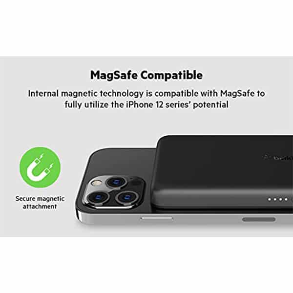 - A wireless charging power bank that takes full advantage of MagSafe technology and won’t block the iPhone 12’s camera, so you can keep using your phone while it charges.