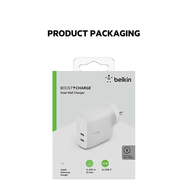 - Pioneer in innovation and technology for over 35 years. Gives two compatible devices a fast charge at the same time with Dual USB-C PD Wall Charger 40W.