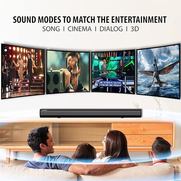 - Adaptive Sound Mode: This Soundbar comes with multiple music modes: Music, Movie, News that analyzes the sound signal and delivers optimized audio, enhancing sound clarity