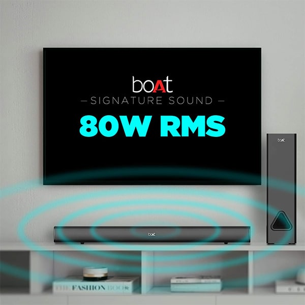 - Experience the boAt Signature sound with the 40W R.M.S premium audio delivered by AAVANTE BAR 1250 and its 40W Wired Subwoofer.
