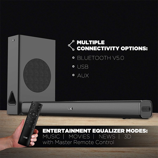- The soundbar is apt for multiple forms of entertainment as it offers different modes such as NEWS, MOVIES, MUSIC and 3D for a true listening experience.
