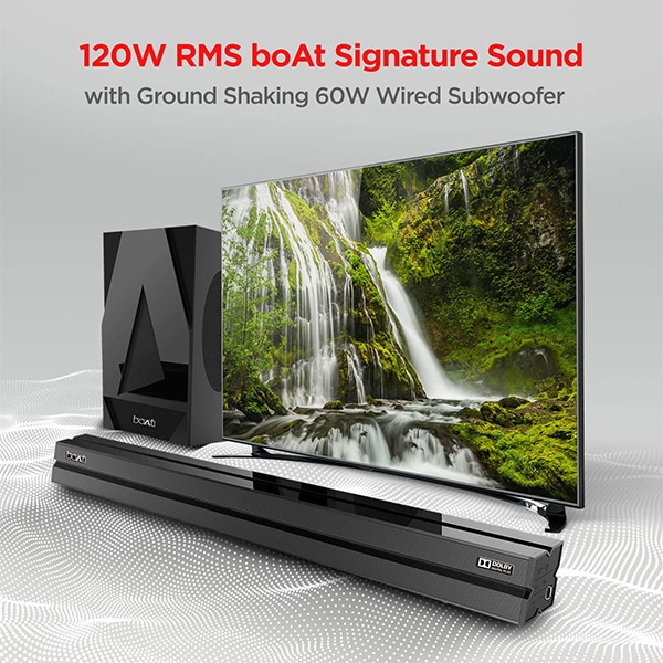 - Experience the boAt Signature sound with the 60W R.M.S premium audio delivered by AAVANTE BAR 1700D and its 60W Wired Subwoofer.
