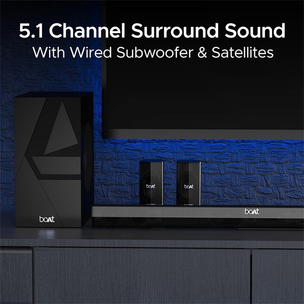 - 5.1-Channel Surround Sound: Make indoor movie viewing sessions larger than life with booming audio from the 5.1 channels of this soundbar. Along with the soundbar, the wired subwoofer and two rear wireless satellite speakers deliver a theatre-like cinematic experience whether you are watching fast-paced action or mellow drama.