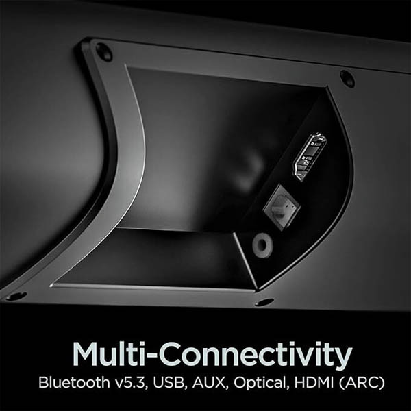 - Connectivity– All your devices are made accessible by the wireless, wired and other forms of connectivity, viz. Bluetooth V5.3, AUX, USB, Optical and HDMI(ARC) with the versatile Aavante Bar Mystiq.