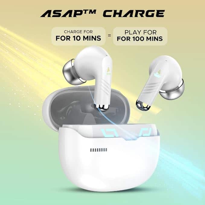 Claim the top position on the leaderboard with the boAt Immortal 101 TWS Gaming Earbuds. Its 40 ms super low-latency BEASTTM mode matches virtual action with high-octane sound for top-notch gaming. Moreover, about 30 hours of power-packed playtime lets you enjoy your gaming spree without interruptions. Race through numerous levels with ease while defeating your opponents in style. Breathing RGB LED lights on both earbuds relay your vibe with rhythmic transitions exuding a pro-gamer appeal. You can revel in listening to your favorite content in balanced boAt Signature Sound for a superior experience. By warding off unwanted background noise, ENxTM technology in the quad mics lets you complete important calls even if you are on the move. Speak to your heart’s content with high clarity and if you’re running low on charge, boAt’s ASAPTM Charge function extends the talk time by up to 100 minutes with just 10 minutes of charging. You can also finish intense workouts daily as these earbuds are shielded against sweat and water splashes with IPX4 resistance. Stream and game seamlessly with Immortal 101!