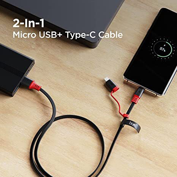 - boAt 2-In-1 Deuce Usb 500 Micro Usb + Type-C Cable Is Compatible With Smartphones, Tablets, Pc Peripherals, Bluetooth Speakers, Power Banks And All Other Devices With Micro Usb & Type-C Ports