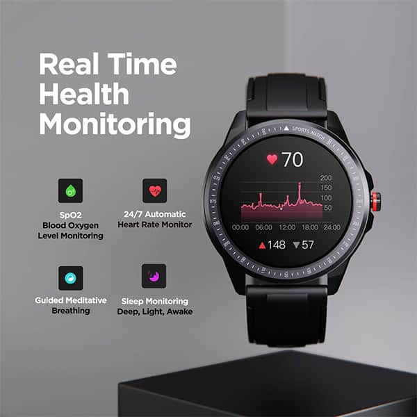 - The health monitoring feature in the watch helps you keep a track of heart rate & blood oxygen levels.
