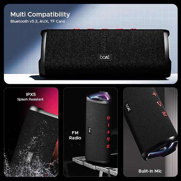 • Elevate your music experience with the boAt Stone 750 Bluetooth Speaker, delivering powerful 12W RMS Stereo Sound that immerses you in your favorite tunes. With up to 12 hours of continuous playtime, this speaker ensures your music keeps going. The TWS (True Wireless Stereo) feature lets you pair two Stone 750 speakers for an even more immersive sound experience. Enjoy FM radio on the go and take your calls with the built-in microphone. Its IPX5 rating ensures that the speaker is water and splash-resistant, making it perfect for outdoor adventures. The multi-compatibility mode allows you to connect your devices effortlessly, ensuring you’re always in control of your music. The boAt Stone 750 is your ideal companion for music on the move, delivering high-quality sound and convenience wherever you go  boAt Stone 750 with up to 12 HRS Playtime Speaker    boAt Stone 750 with up to 12 HRS Playtime Speaker