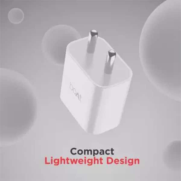 The boAt WCD 20W PD Wall Charger with 20W Power Delivery charging support is the answer to all your charging needs. Its smart IC protection offers built-in surge protection, short circuit protection, over current protection & overheat protection. With universal compatibility, it will connect to all PD supported devices. Its built-in auto-detect charging adapts to your device’s charging needs automatically. The durable capacitors have up to 10000 cycles and is aptly complimented by its corrosion resistant pins.