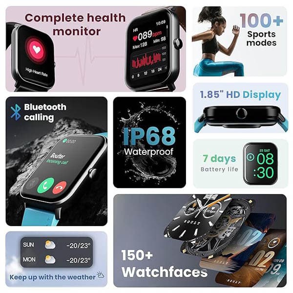 - 1.85” HD display: Get a clearer picture with the premium 1.85” HD display, and 500 Nits brightness that gives you a vivid picture even during the brightest hours of the day.