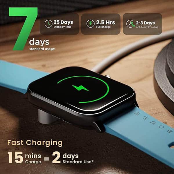 - Superior battery power: Leave the stress of charging frequently as Dive Plus offers 7 days of standard usage, 25 days of standby time, 2.5 for a full charge, and 2-3 days of battery backup with heavy Bluetooth calling. Type C Lightning Boult charging: No more waiting game. Dive Plus with Type-C fast charging delivers 2 days of standard usage in a mere 15 minutes of charging.