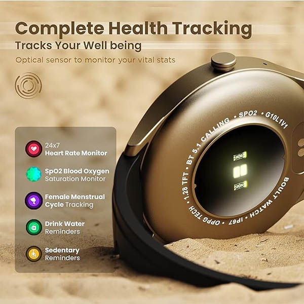 • Health Monitor: SpO2 Blood Oxygen Saturation Monitor, 24*7 Heart Rate Monitor, Blood Pressure Monitor, Female Menstrual Cycle Tracking, Sleep Monitor, Drink Water Reminder, Sedentary ReminderBoult Audio Striker Smartwatch with 1.3Boult Audio Striker Smartwatch with 1.3