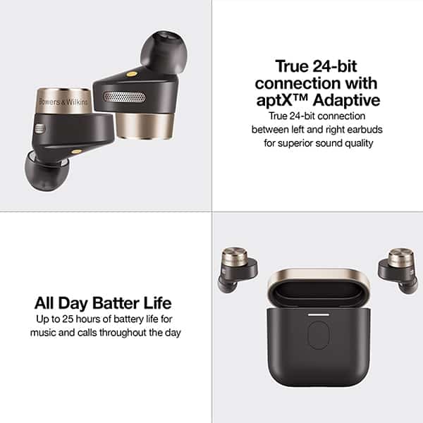 - RICH, PRISTINE SOUND QUALITY – Featuring Bluetooth 5.0 with Qualcomm aptX Technology, and dual hybrid drivers with individual amplifiers, the B&W PI7 true wireless headphones ensure allow high fidelity 24-bit streaming from your phone, tablet, or computer