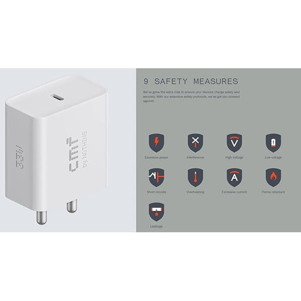 • Aesthetic Appeal: The charger showcases a unique minimalist design that aligns with the overall aesthetic ethos of Nothing products, often characterized by transparent elements and modern lines.