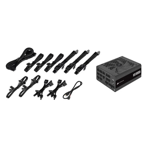Corsair HX1000i 1000 Watt ATX 3.0 80 Plus Platinum SMPS with Ultra-Low Noise has Magnetic Levitation fan with Zero RPM mode and 105°C rated 100% Japanese electrolytic capacitors.