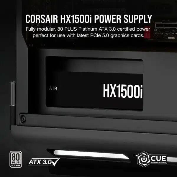 Corsair HX1500i 1500 Watt ATX 3.0 80 Plus Platinum SMPS has Magnetic Levitation fan with Zero RPM mode and 105°C rated 100% Japanese electrolytic capacitors.