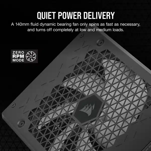 HXi Series PSUs combine a 140mm fluid dynamic bearing fan with Zero RPM mode support for long-lasting fan performance and near-silent operation when the fan switches off at low and medium loads – only spinning as fast as it needs to.