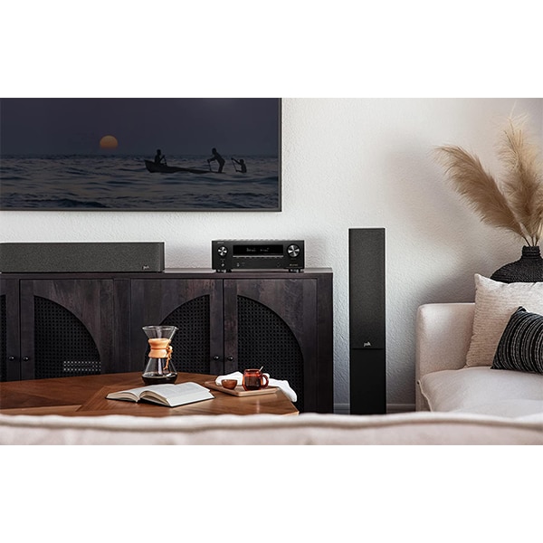 Upgrade your home theater with the Denon AVR-X1700H. With 80W per channel (8 ohms, 20Hz-20kHz, THD: 0.08%, 2 ch. driven), this performance-tuned Denon AV receiver provides a truly immersive 3D audio experience. Supports Dolby Atmos®, Dolby Atmos Height Virtualization Technology, DTS:X® and DTS Virtual:X™. The AVR-X1700H also supports the latest video technologies such as 8K/60Hz and select 4K/120Hz pass-through on three dedicated inputs, Dolby Vision™, HDR10, HDR10+, Dynamic HDR, HLG, as well as 8K upscaling and HDCP 2.3 support on all HDMI inputs (6 in/1 out).
