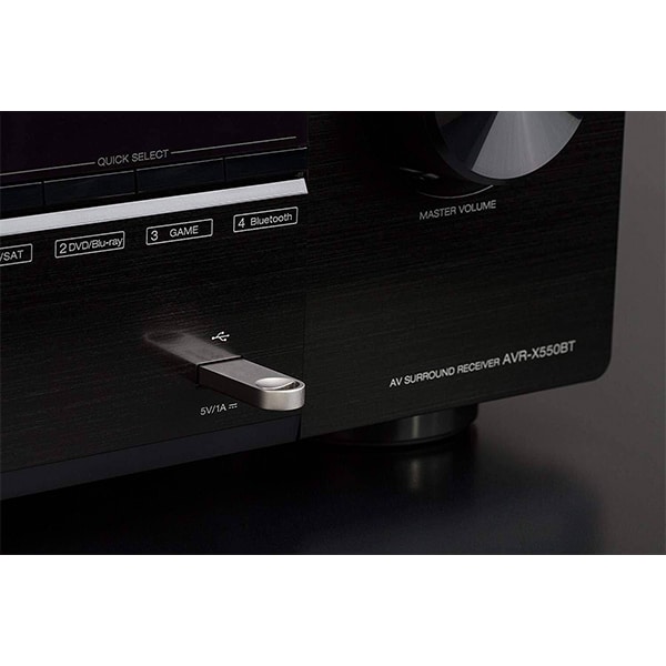 The AVR-X550BT AV with a 5.2 channel receiver is capable of delivering quality home theater at an accessible price. It allows one to watch their favorite movies and shows with exceptional picture clarity. All credit goes to the very specific Full 4k Ultra HD. It is having Dolby Vision and HDCP 2.2 (supported on three of the five HDMI inputs). The AVR-X550BT AV supports Bluetooth for undisturbed music streaming. The device allows you to stream music with built-in Bluetooth or play back MP3, WMA, FLAC and MPEG-4/AAC tracks via the front panel USB port.