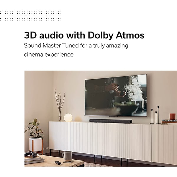 - EXPERIENCE VIRTUAL SURROUND SOUND, multi-dimensional audio and enhanced bass from your TV’s streaming apps, Blu-ray movies, as the compact soundbar offers quick connectivity using the HDMI eARC and optical inputs, WITHOUT THE NEED FOR ADDITIONAL SPEAKERS