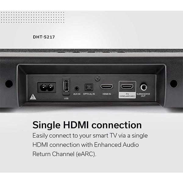 - TRANSFORM YOUR TV INTO A HOME ENTERTAINMENT CENTER with DHT-S217 soundbar, integrated with down-firing subwoofers, for a thrilling 3D audio experience with Dolby Atmos overhead effects pumping DYNAMIC THEATER-QUALITY AUDIO into your entertainment setup