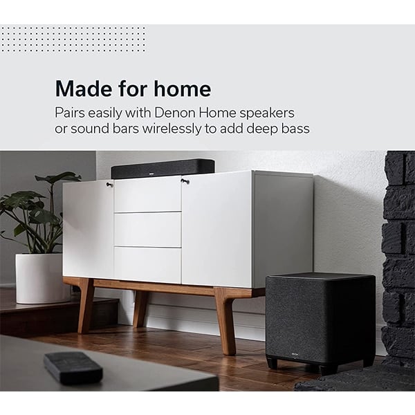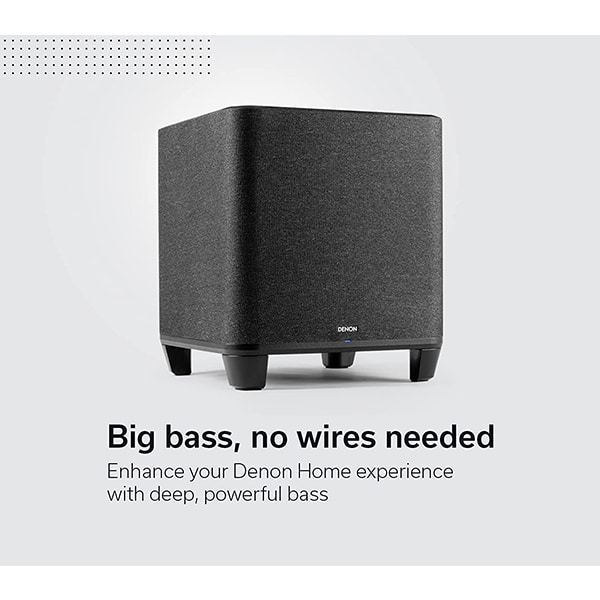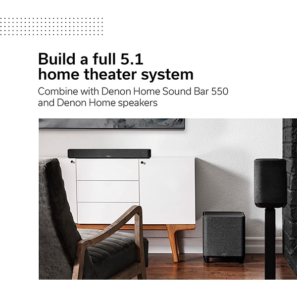 - CUSTOMIZE YOUR HOME THEATER EXPERIENCE – Pair the sub with Denon Home Sound Bar 550 and a pair of Denon Home 150/250/350 Speakers or HEOS Speakers to create a 5.1 surround sound system, or extend the bass power of your speakers in a single or stereo setup