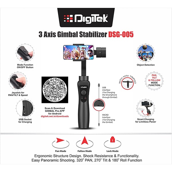 - Model: Digitek 3-Axis Handheld Gimbal Stabilizer for Smartphones