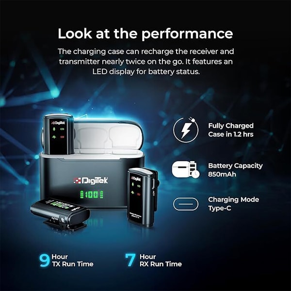 - Long Battery Life: Benefit from up to 9 hours of continuous use with both receiver (Rx) and transmitter (Tx) run time.
