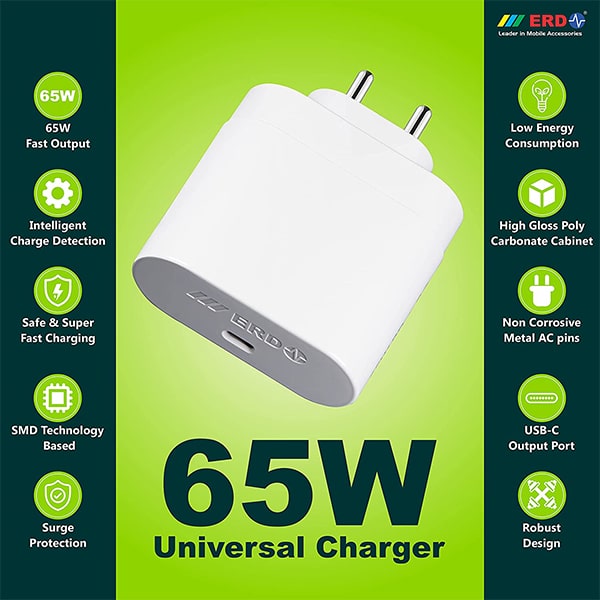 - FAST CHARGING : ERD TC-31 Adaptor gives guaranteed output of DC 5V-3Amp (Max), stabilized output for safe & fast charging.1M USB Type-c Cable is included.