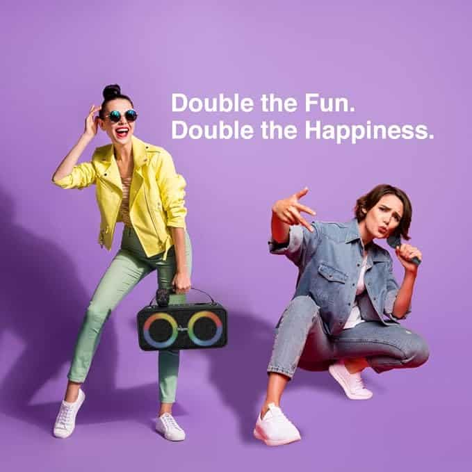 | Special Feature | Appealing design with 2 Mics storage included, 2 sets of 3-inch Full Frequency Hi-Fi Speaker Drivers |