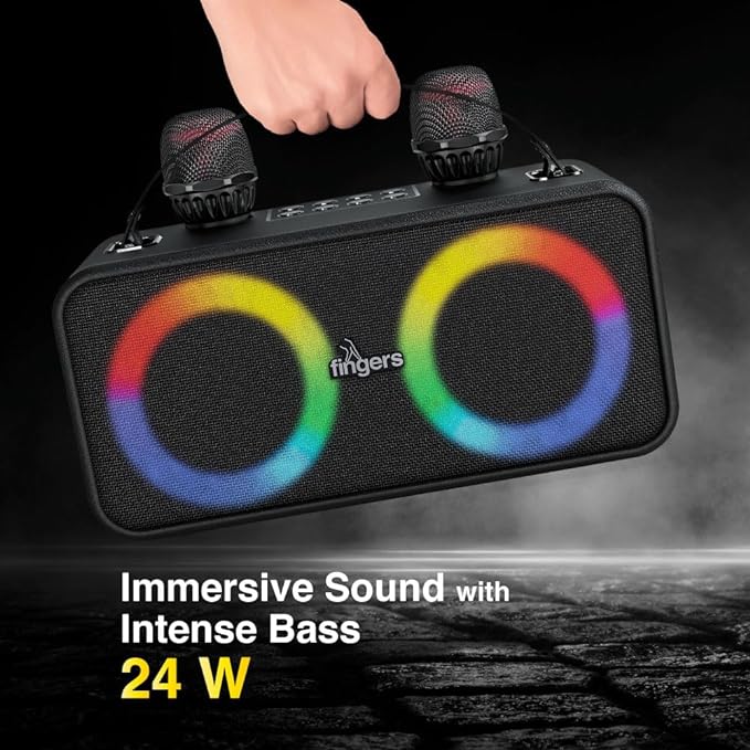 | Included Components | 1 x FINGERS 2Mic-Karaoke, 1 x Brand Note, 1 x USB-C Charging Cable, 1 x Quick Start Guide, 2 x Wireless Mics with built-in Battery1 x FINGERS 2Mic-Karaoke, 1 x Brand Note, 1 x USB-C Charging Cable, 1 x Quick Start Guide, 2 x Wireless Mics with built-in Battery |