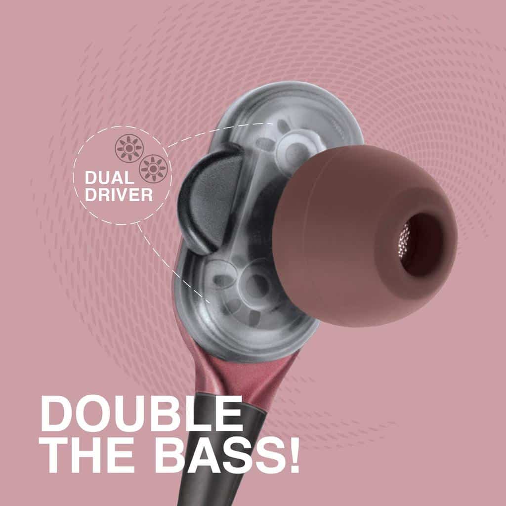 • Dual Drivers – Double the bass: Armed with powerful Dual Drivers in each earbud, the deep and powerful bass produced will blow your mind and stir your soul. Double Effect, indeed!